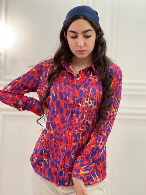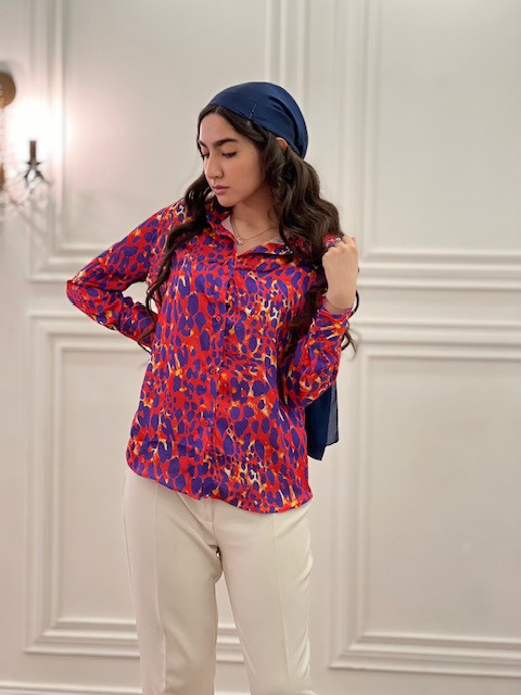 شومیز ساتن پلنگی ترک