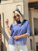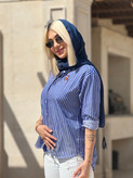 شومیز آبی راهراه ترک زنانه با گلدوزی تدی