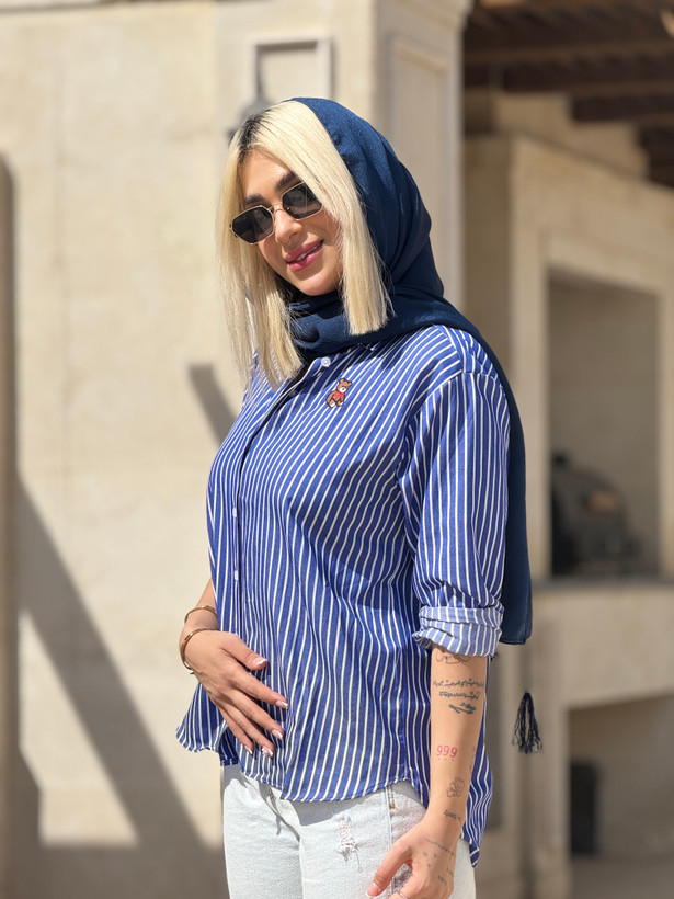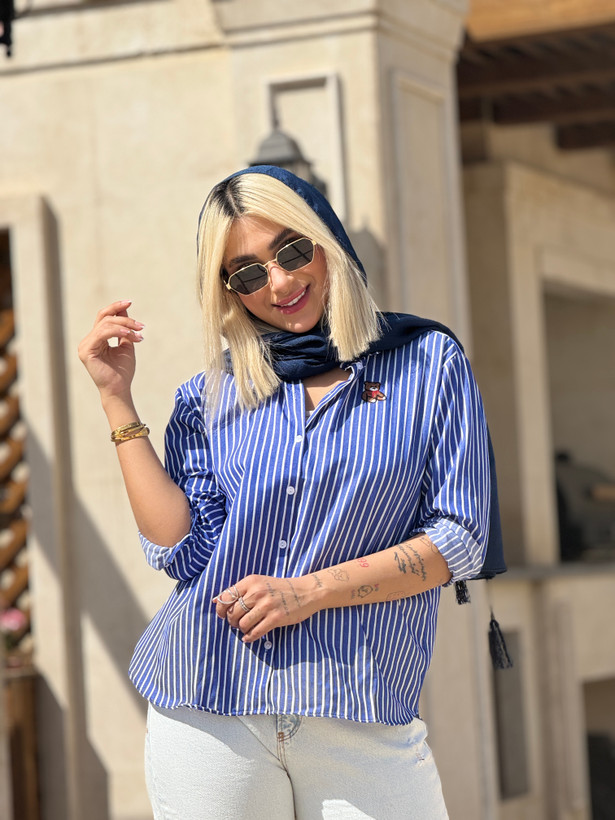 با انتخاب این شومیز ترک زنانه آبی راهراه، ترکیبی از کیفیت، راحتی و ظرافت را به کمد لباس خود اضافه کنید.