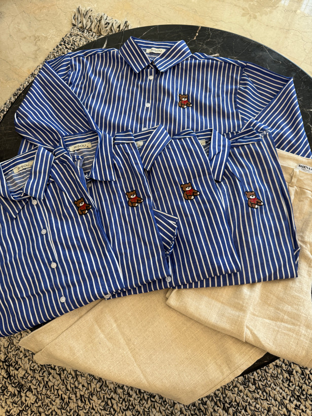 ✅ رنگ و طرح: آبی راهراه با تزئین گلدوزی تدی جذاب
