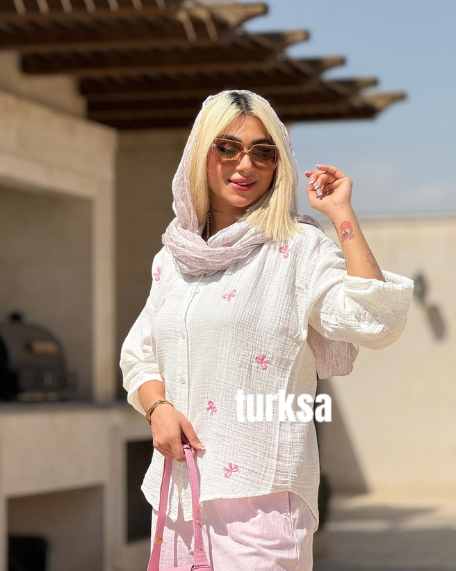 شومیز نخی پفکی با گلدوزی پاپیون ترک