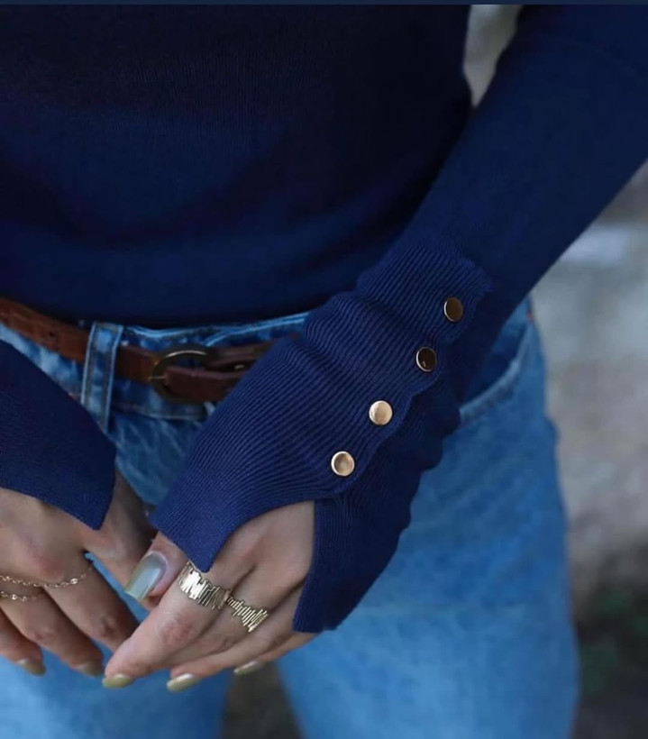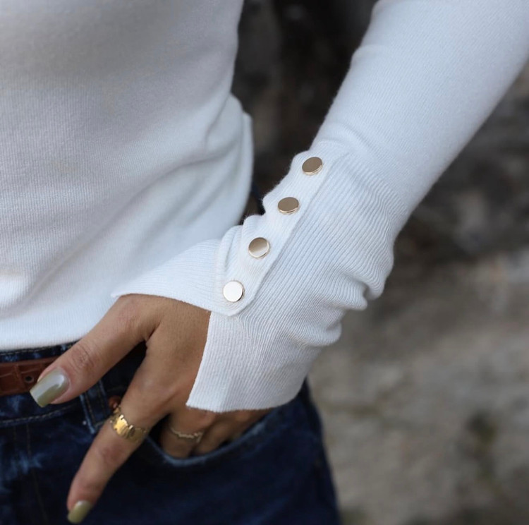 بافت یقهاسکی زنانه دیلوین ترک | بافت ساده با دکمه طلایی سرآستین طرح زارا