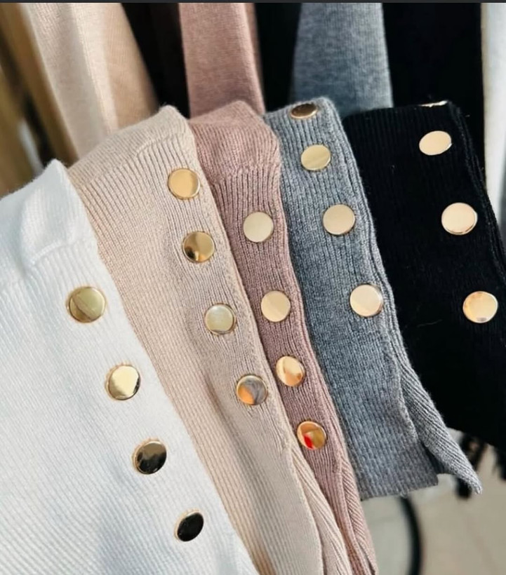 بافت یقهاسکی ساده زنانه با سرآستین دکمه طلایی – برند دیلوین طرح زارا