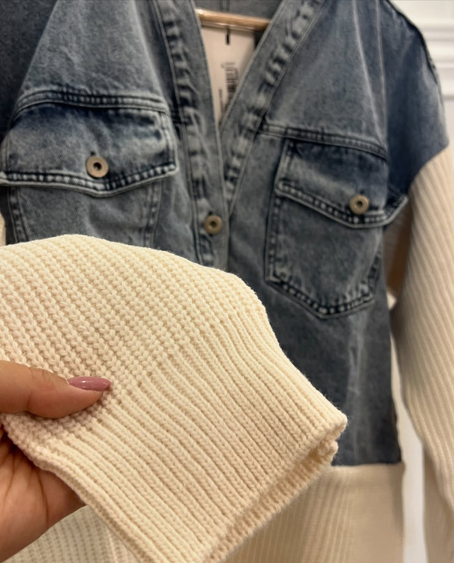 اگر به دنبال استایلی متفاوت، راحت و خاص هستید، این ست زیبا ترکیبی از بافت زنانه شیک و کت جین کلاسیک است. طراحی هوشمندانه آن باعث میشود هم برای استفاده روزمره فوقالعاده باشد و هم در جمعهای دوستانه و نیمهرسمی بدرخشید.