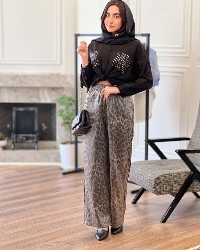 تو میتونی یک شلوار خاص مثل این داشته باشی برای جاهایی که میدونی باید بین همه تک باشی شلوار شاین دار پلنگی برند ترک کمر کش سایزبندی از ۴۶ @turksa.mezon @turksa.mezon بفرست برای اون دوستت که عاشق پترن پلنگیه #پلنگی#شلوارترک#شلوارزنانه#برند#اورجینال#خرید_انلاین