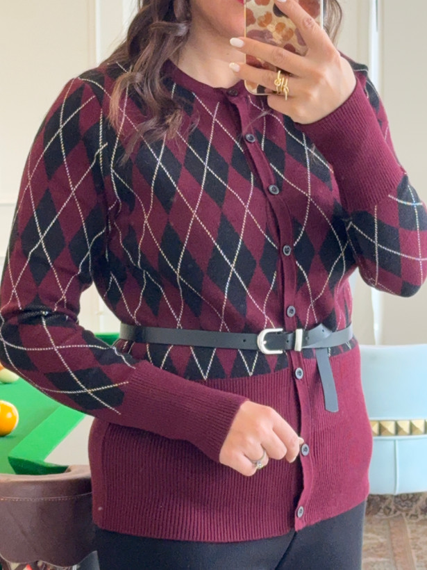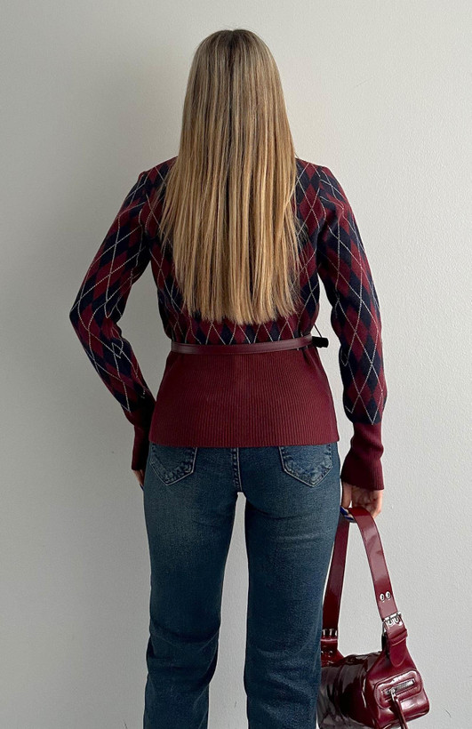 رنگ قهوه ای ترند سال با طرح لوزی که با شلوار جین یا لگ یک استایل خاص میشه