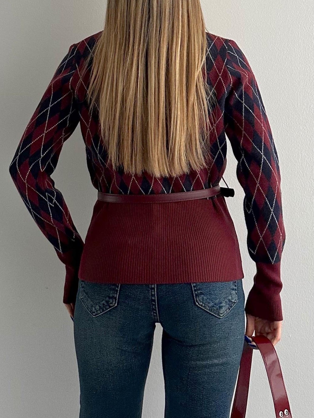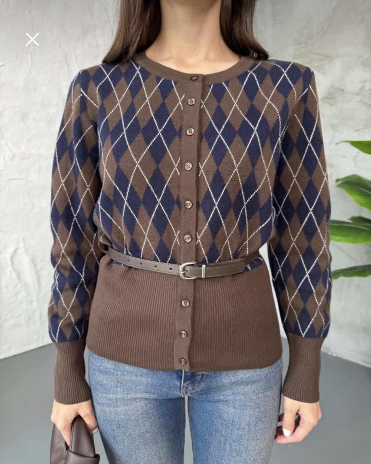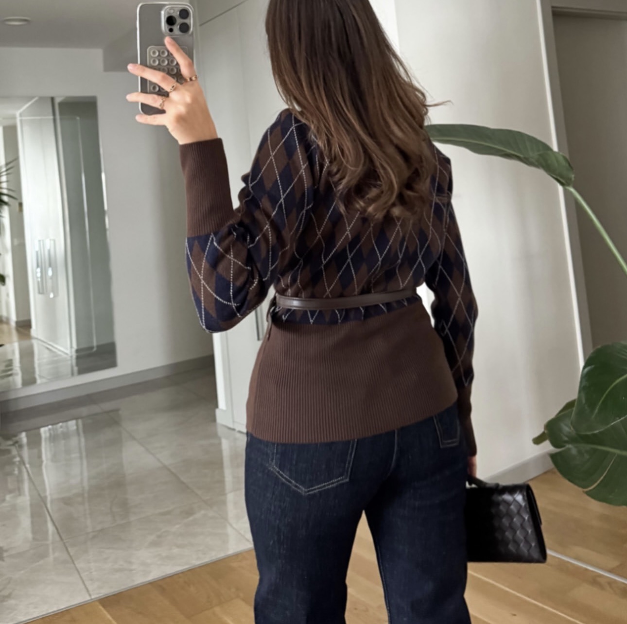 رنگ قهوه ای ترند سال با طرح لوزی که با شلوار جین یا لگ یک استایل خاص میشه