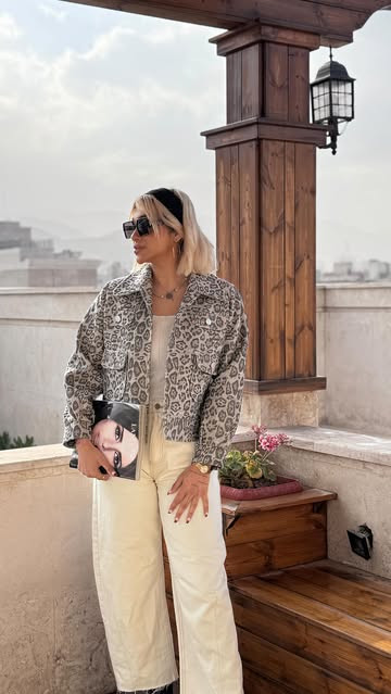 کت فوتر طرح پلنگی ترند امسال و هرسال پارچه وارداتی ترک استر دوزی شده با دیتیل جذاب مناسب استایل های پاییزی و زمستانی